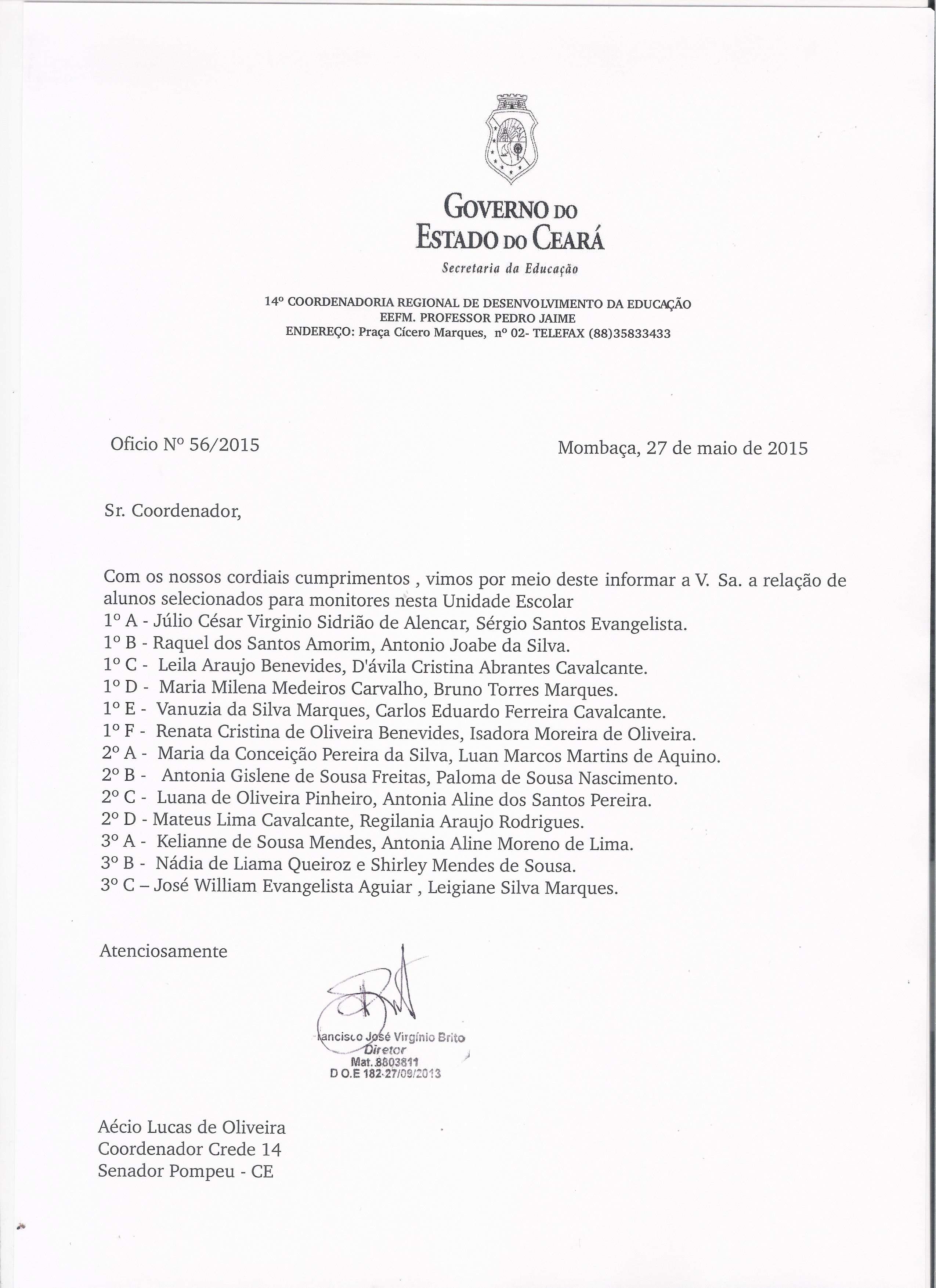 EEM Fenelon Rodrigues Pinheiro – Monitoria